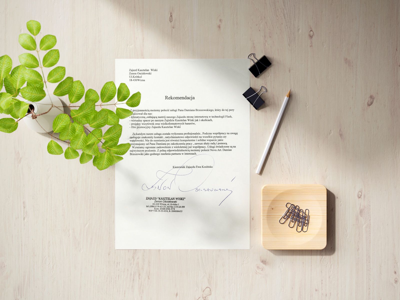 Z przyjemnością możemy polecić usługi Pana Damiana Brzozowskiego, który do tej pory zrealizował dla nas:
