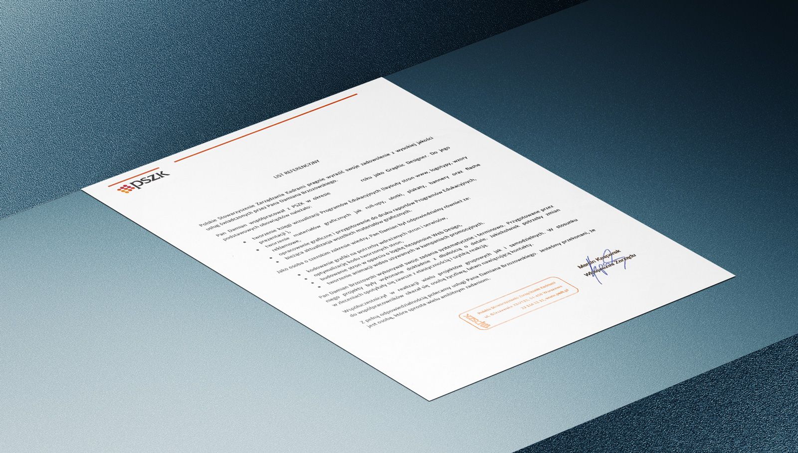 Pan Damian współpracował z PSZK jako Graphic Designer. Do jego podstawowych obowiązków należało: